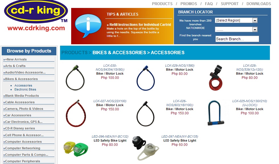 As of now they have a few items, bike locks and LED lights. But I’m counting on this to expand since they are offering e-bicycles. Much like how the dslr accessories grew in number. They also have cree LED flashlights priced at 200-300 a piece.