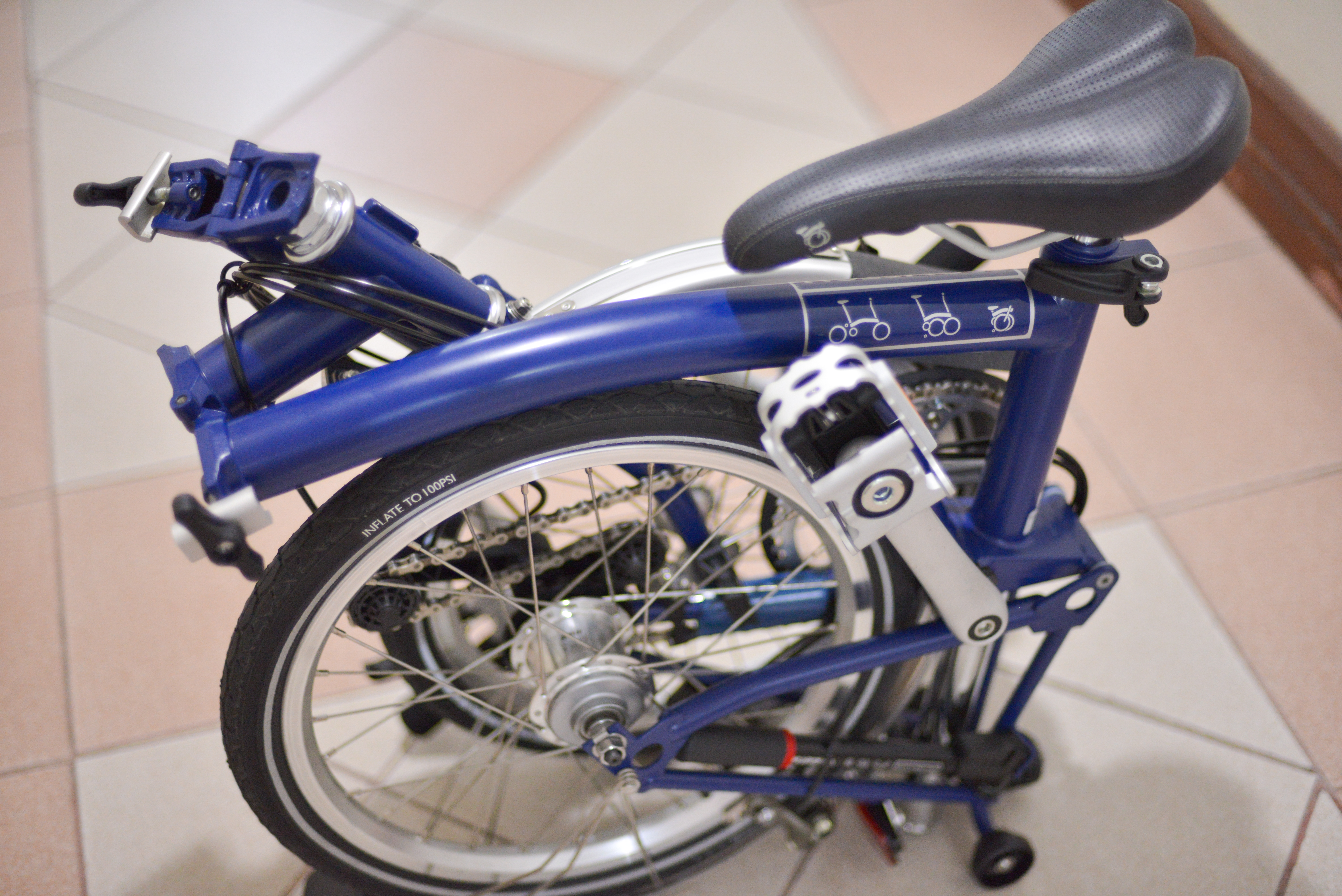 I know, I should probably change the blog name after purchasing this bike. It probably should be renamed, pulubibiker.com (pulubi = mendicant, beggar, or in my case, bankrupt). It was supposed to be a surprise from my wife. She messaged one of the stores selling the Brompton to reserve one unit and she left her Facebook open. I saw the conversation by accident, and the surprise was ruined. Anyways, here she is, a Cobalt Blue, M6L, 2014 Brompton folding bike.