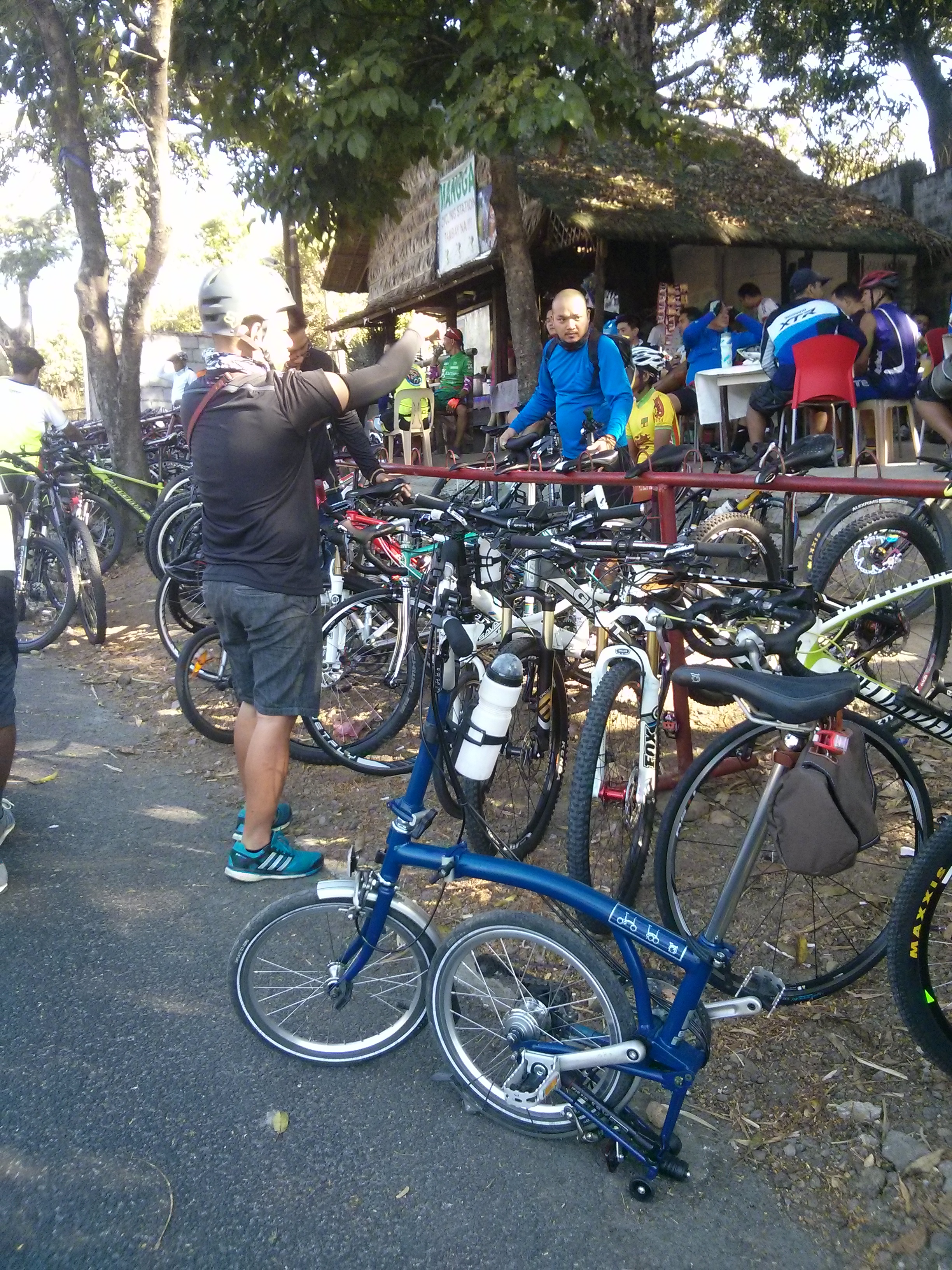 I wasn’t able to take a lot of photos because of the steep road. There were a lot of friendly bikers, riding all sorts of bikes. Most were on mountain bikes and road bikes. Most of them were enjoying their dual chain ring, 8+ speed bikes, while I was riding a folding bike, with 16″ tires, and 6 gears to choose from. I know, ginusto ko yan eh! Our group were all riding folding bikes by the way.
